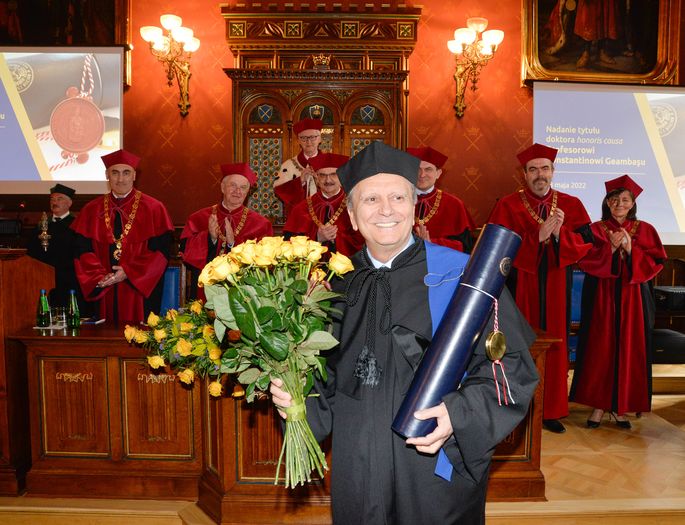 - Dzisiejsze wyróżnienie to chwila autentycznego szczęścia. Jest to również szlachetny gest kulturowy, który świadczy o tym, iż Polacy umieją doceniać nas, polonistów zagranicznych promujących kulturę polską w swoim kraju - mówił w poniedziałek 23 maja prof. Constantin Geambaşu podczas uroczystego posiedzenia Senatu Uniwersytetu Jagiellońskiego, w trakcie którego odebrał tytuł doktora honoris causa UJ.